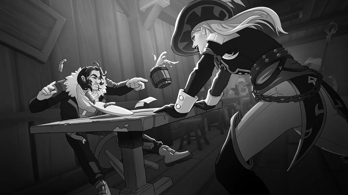 “Word is,” said Lady Luck, “you’re weaving tales of something new. Something big. My partner and I need this information.” She nodded to the bar where Priyani watched, hiding behind a weathered flagon. Surprised at being pulled into the exchange, she offered an awkward wave in return.