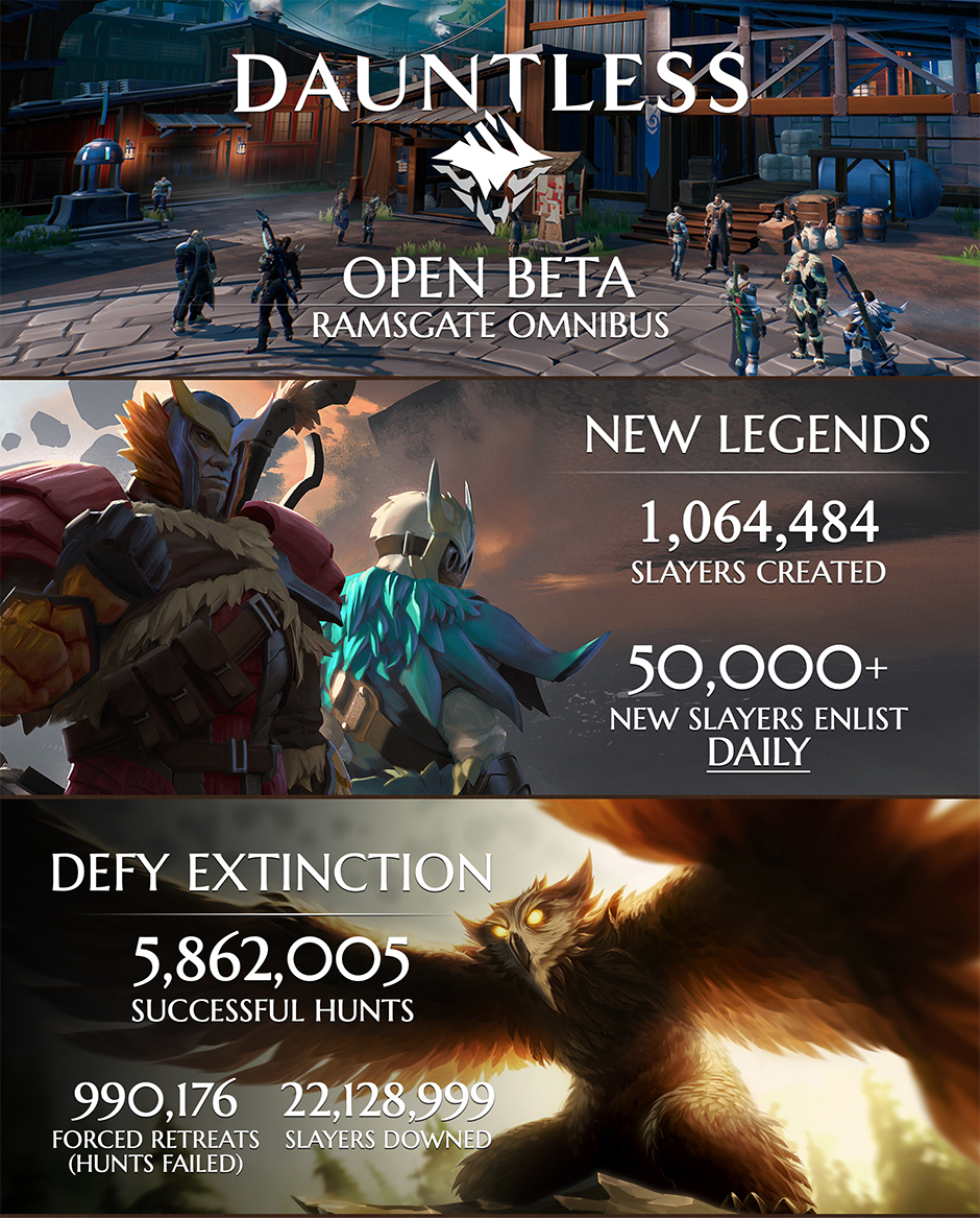 The Dauntless Open Beta has exceeded all of our expectations. From the number of Slayers that have arrived to forge their legends, to their determination to stand against the Behemoth onslaught, to the unique creations that Dauntless players are creating — we’re blown away.
